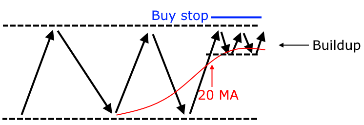 You can just set your stop loss below the lows of the buildup.