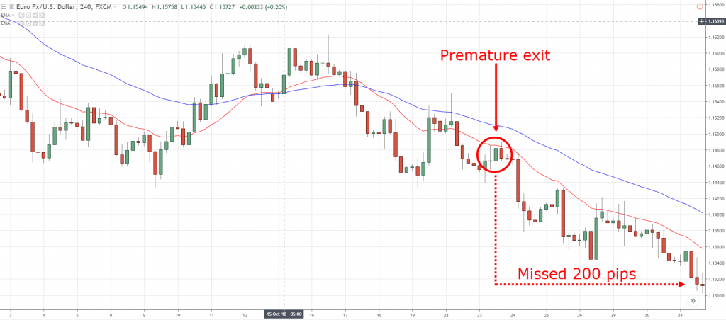 This is when the little voice in your head starts saying “ahh how stupid I am, if I’m more patient, I could have made another 300 pips!”
