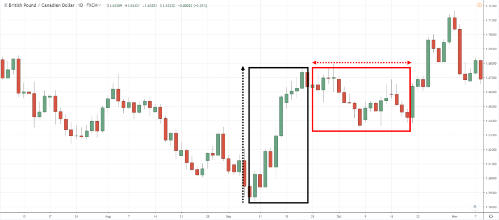 This is how a healthy good-looking trend would look like where the trending move has large bodied candles, and a retracement move has smaller bodied candles (vice-versa for a downtrend).
