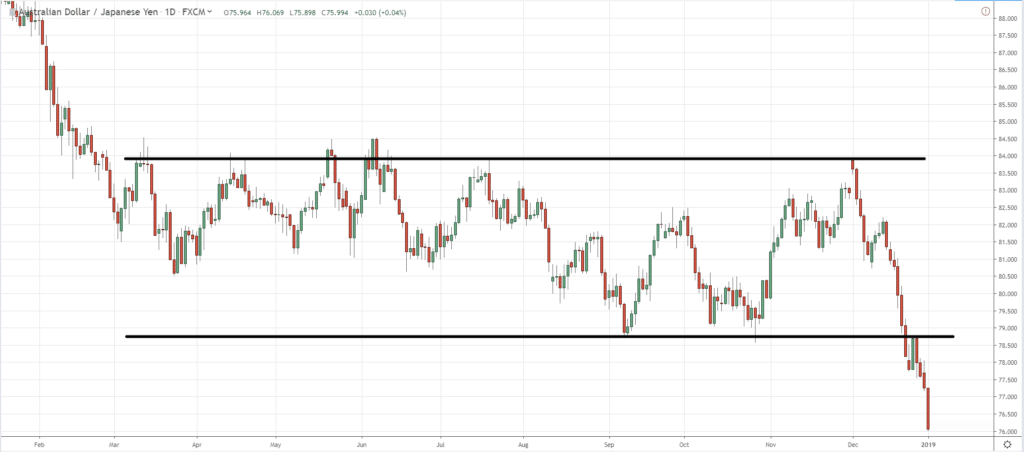 Another example is AUD/JPY where you can see the swing highs and lows…
