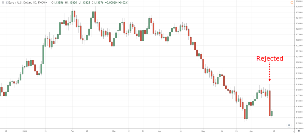 What this tells you is that at one point in time the sellers actually pushed the price from these highs down lower until the price closed over here: