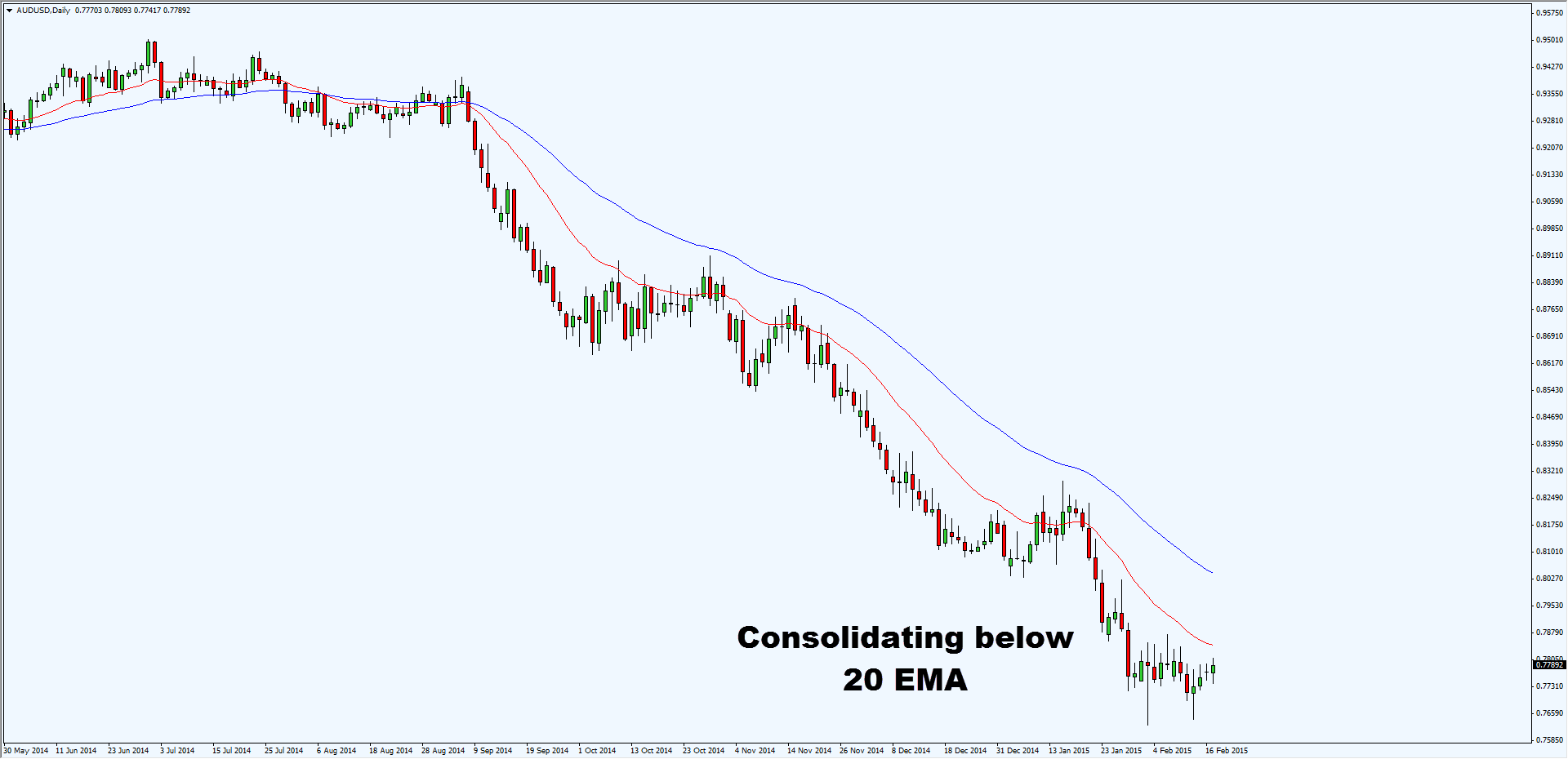 Audusd daily is still relatively weak as price is still hovering below the 20 EMA