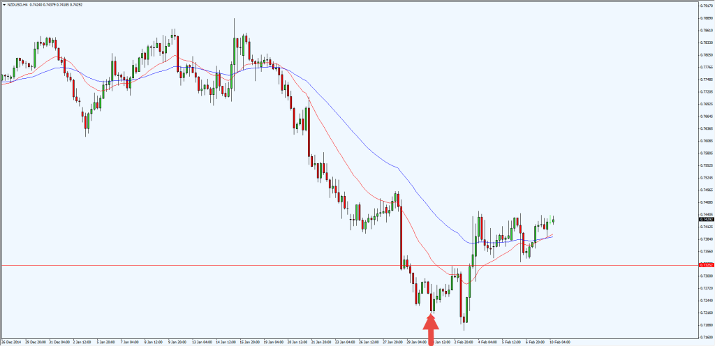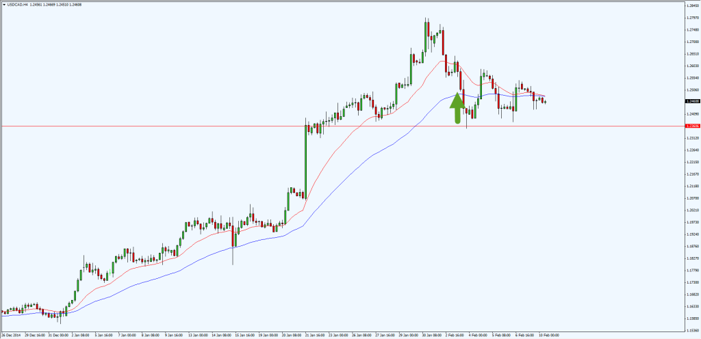 Below are the charts of the trade I’ve taken and got stopped out. The arrow marks my entry and the red line my stop loss.