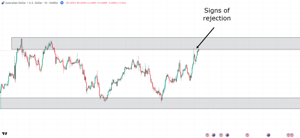 AUD/USD 1-Hour Chart Range Support Entry:
