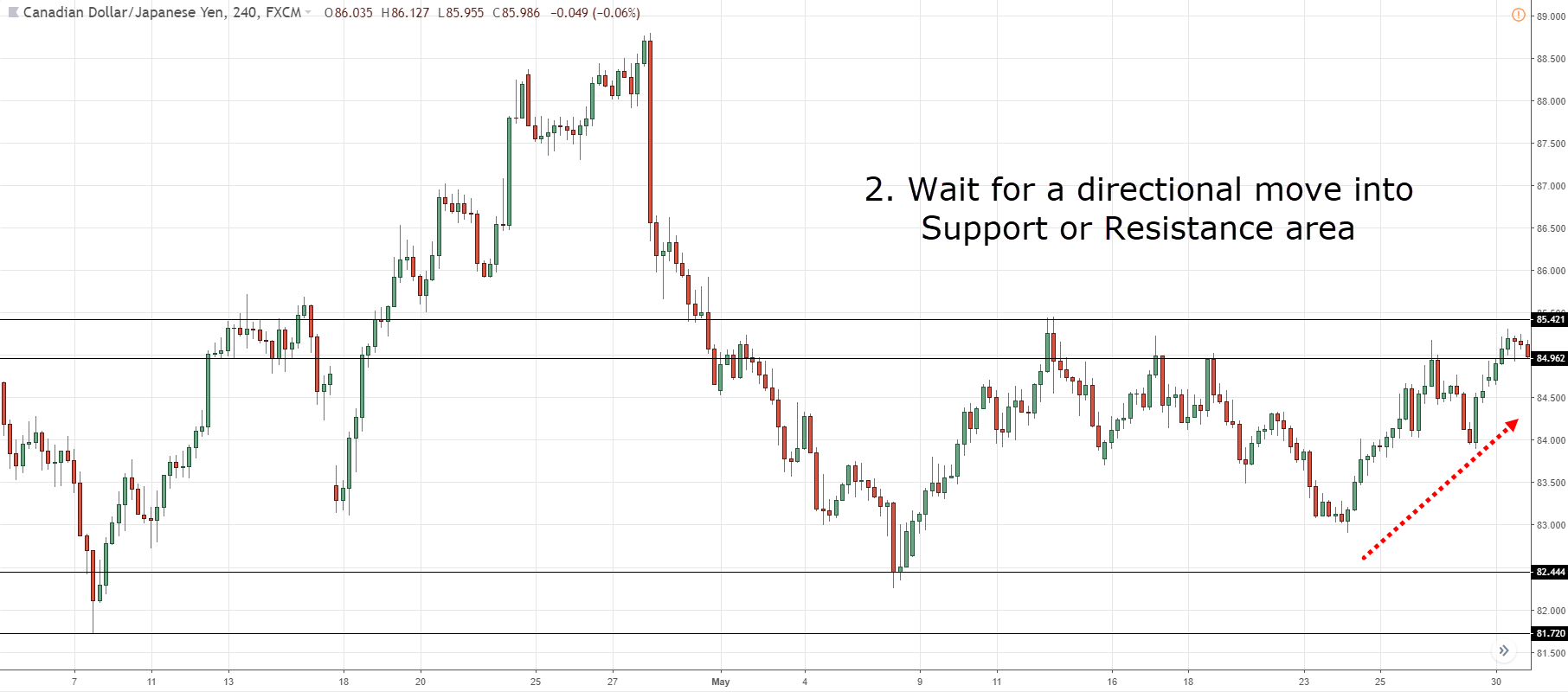 Mark your support and resistance area on your chart. When price approaches either area, you wait for a false break. Then you enter at the close of the next candle and set your stop loss a over the previous highs/lows.