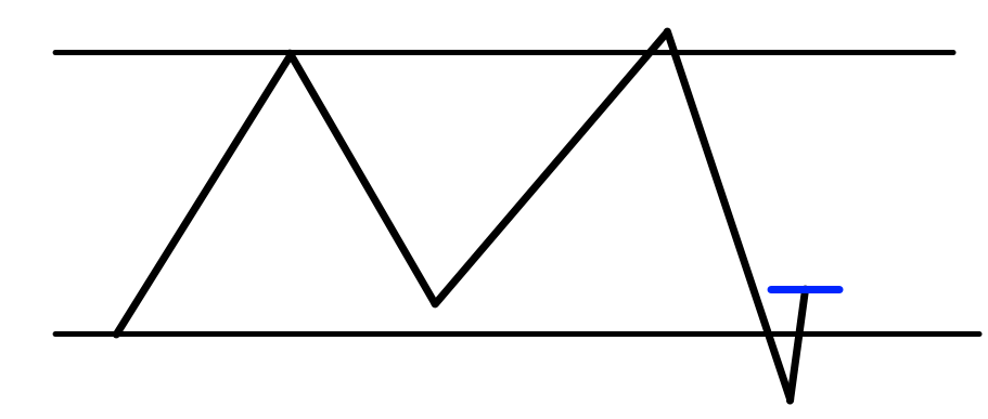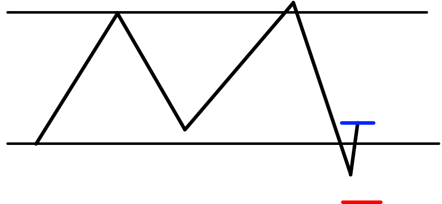 Let’s say a market is in a range. It comes down near these lows, and breaks out higher, closing above support.