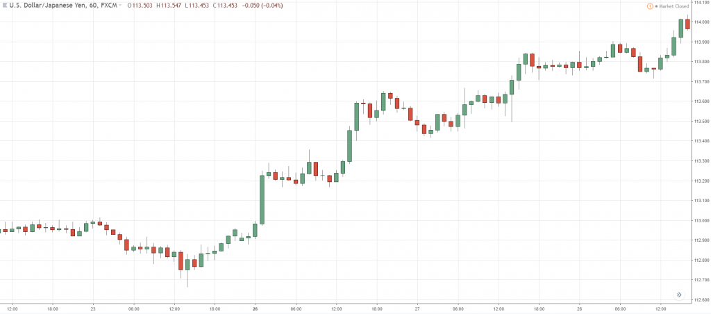 If you’re trading the hourly, then your job is to trade trends on the hourly timeframe.